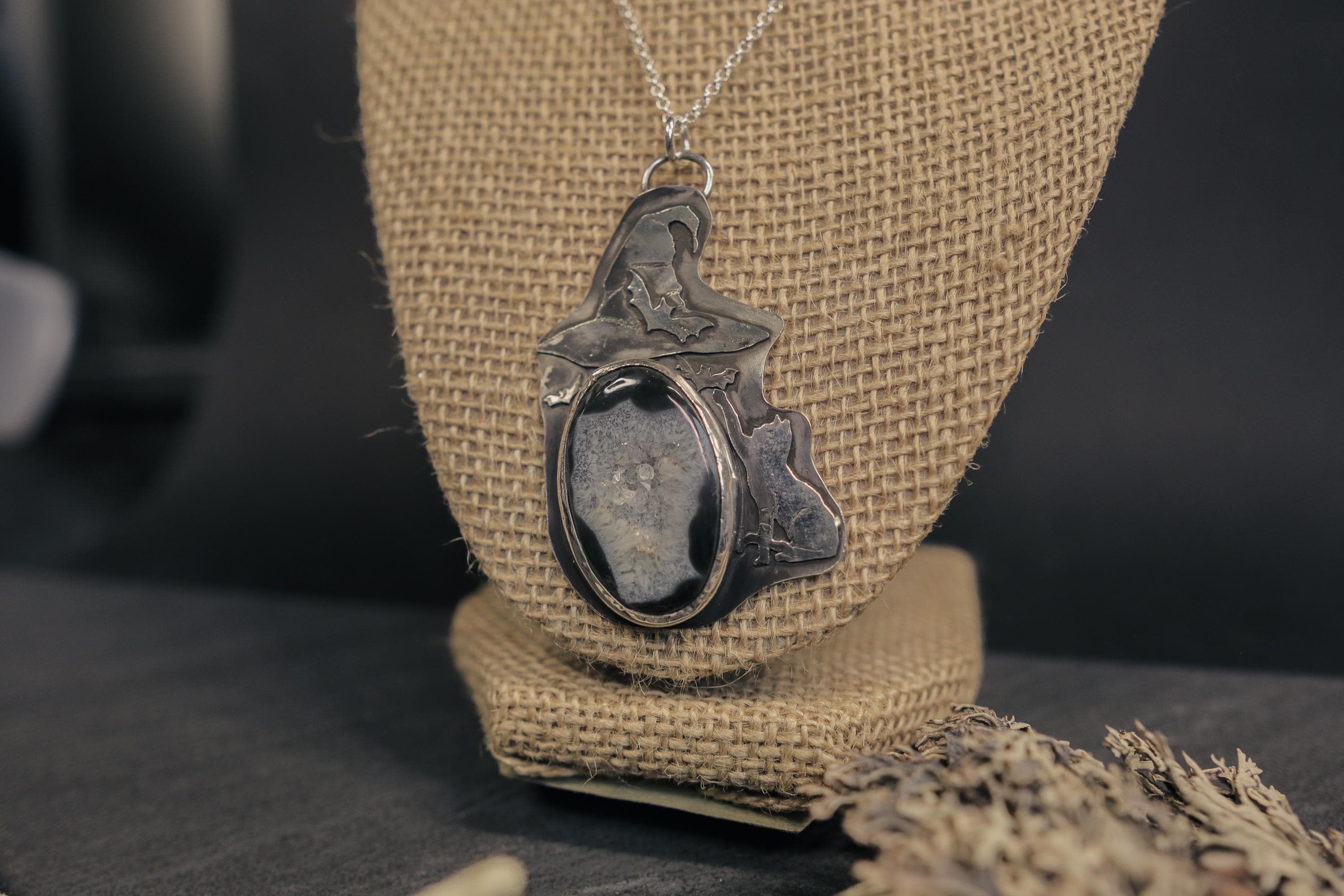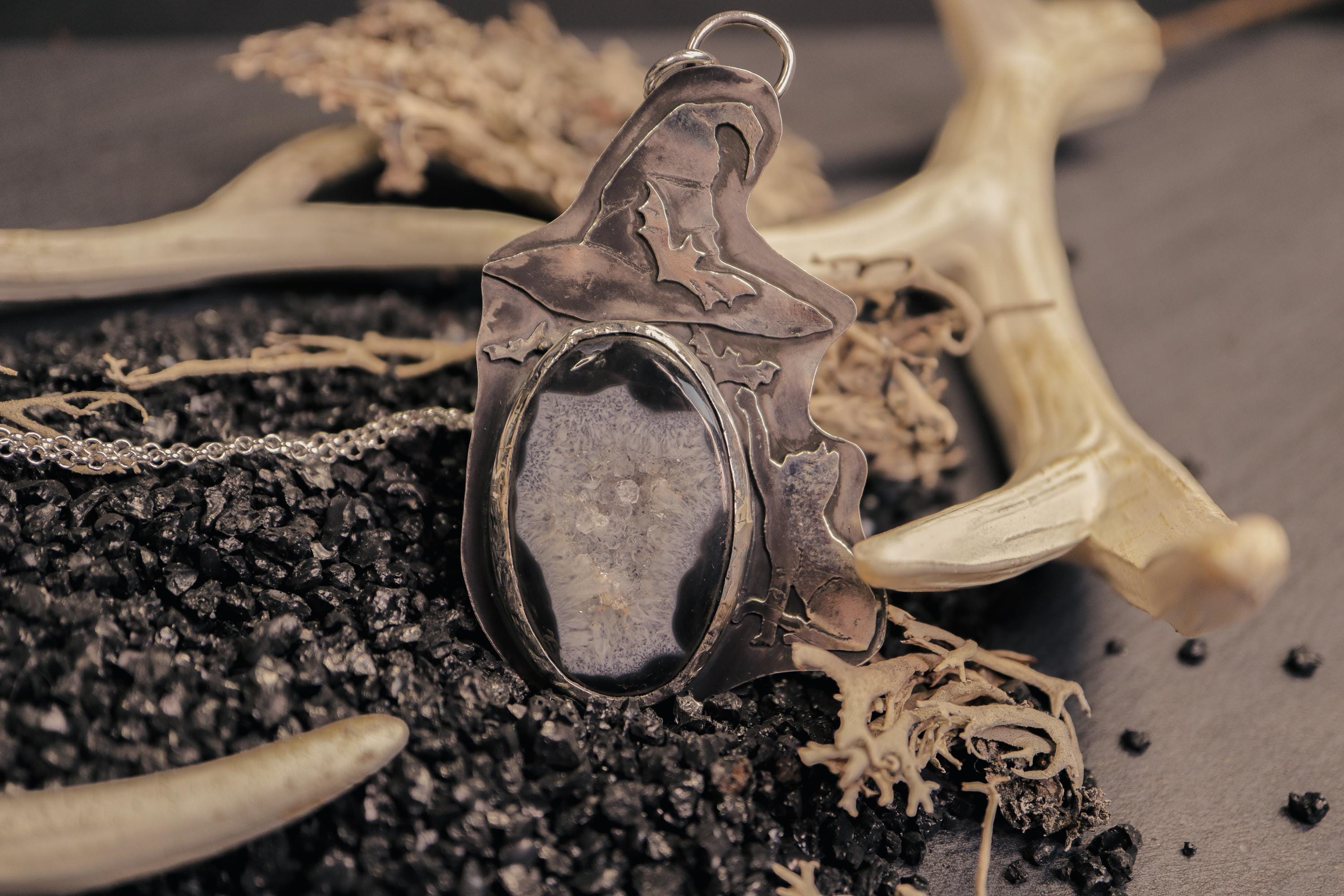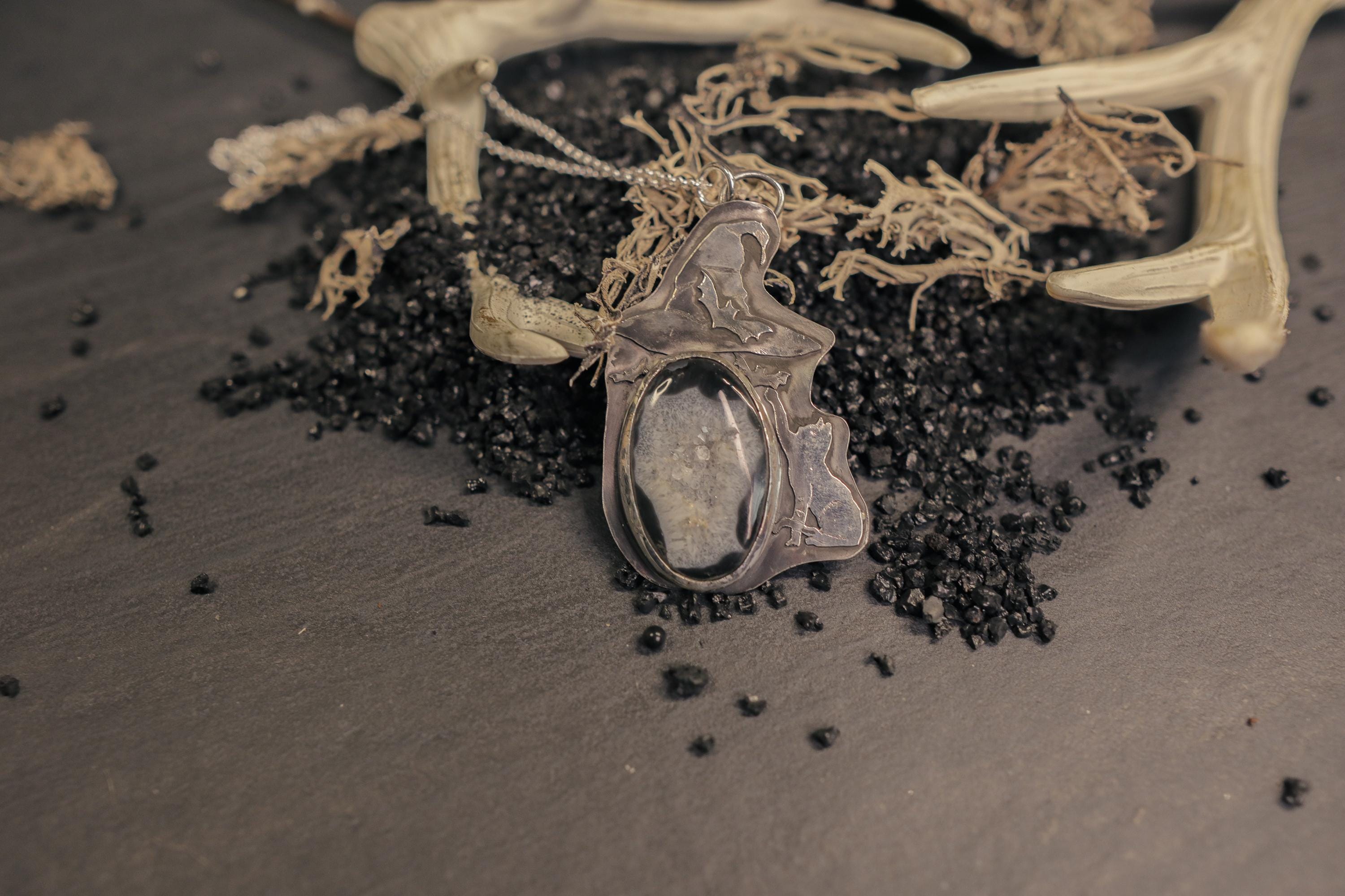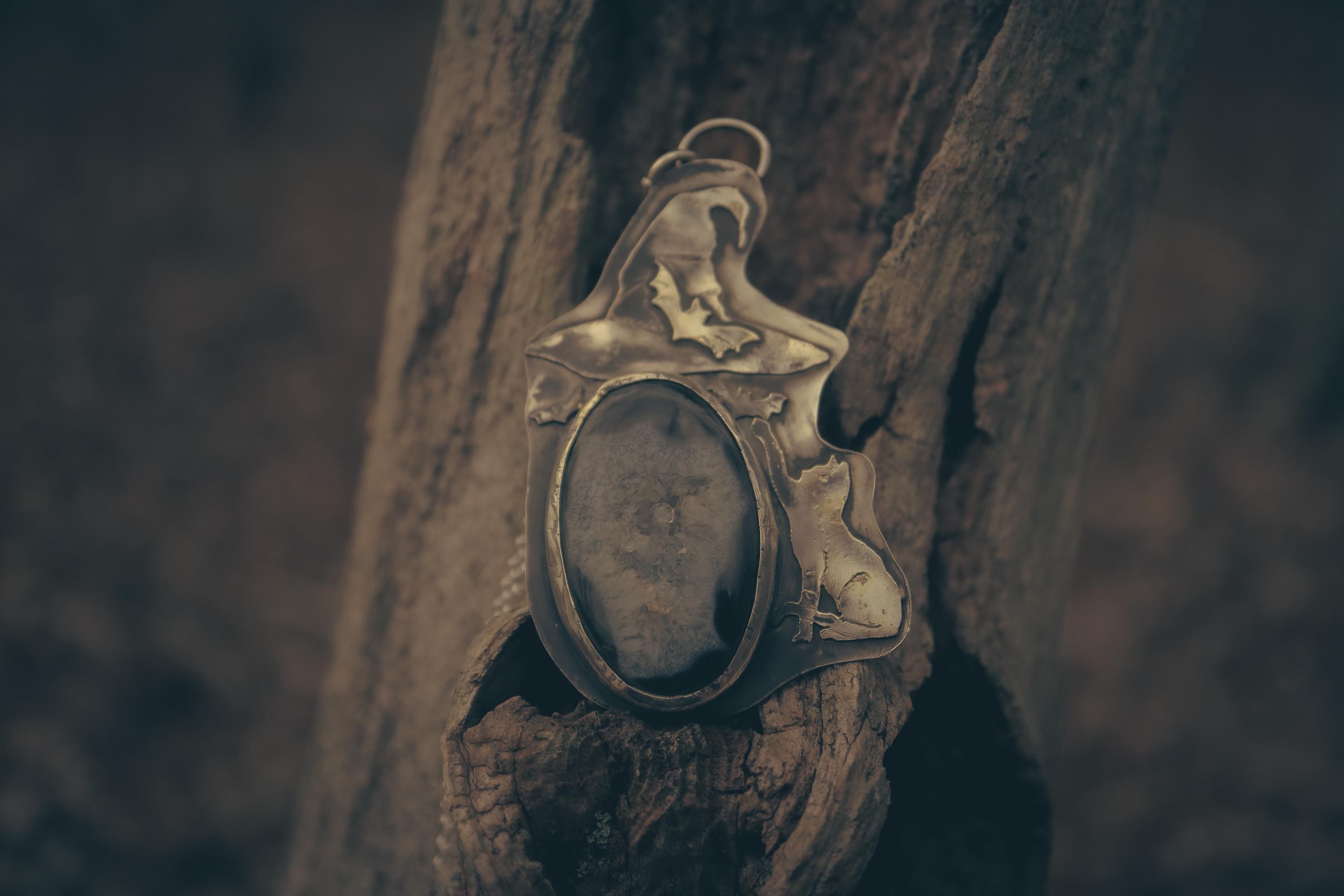 Finished with a matte, darkened patina to enhance each sculpted detail, this pendant brings together whimsy, shadow, and elegance. It hangs from a sturdy 2mm sterling silver rolo chain, making it an enchanting statement piece for Samhain, Halloween, or year-round witchy style.