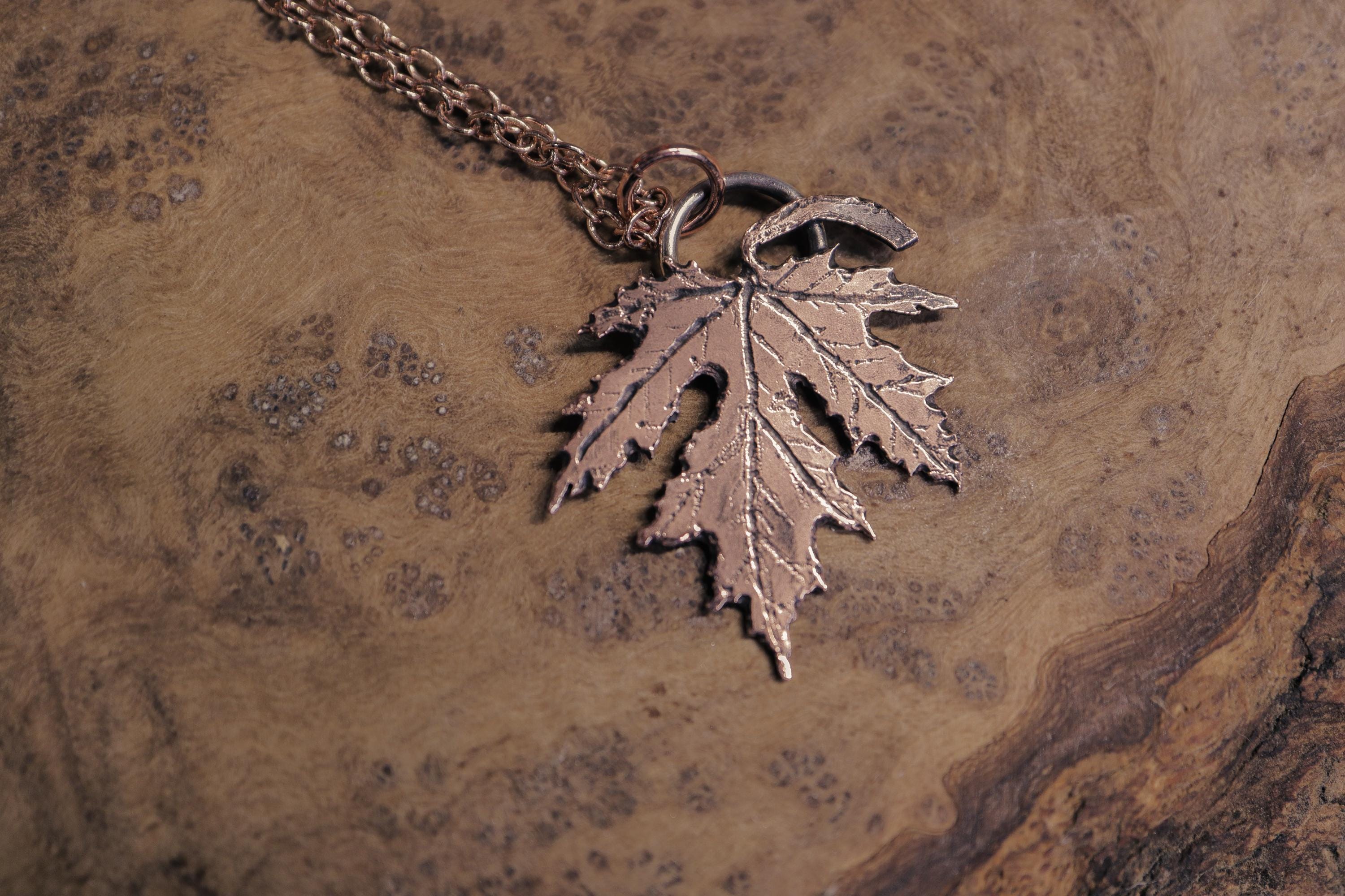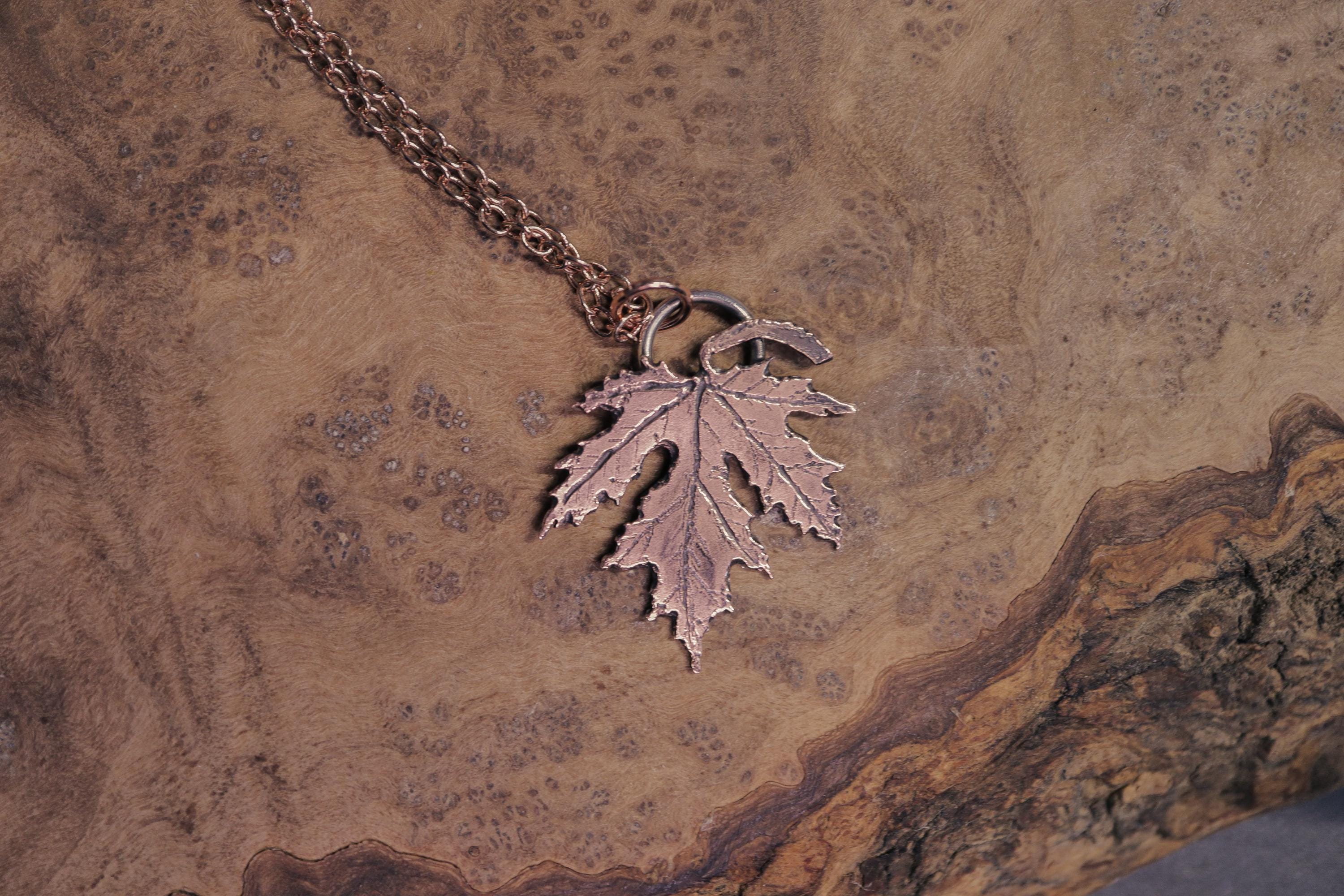 Celebrate the beauty of fall with this handmade Copper Autumn Leaf Pendant. Carefully cut from 20-gauge copper and engraved with delicate vein details, this pendant mirrors the organic texture of a real autumn leaf. Each piece is individually crafted to embody the cozy, golden charm of the season—perfect for nature lovers, autumn enthusiasts, or anyone who adores rustic, earthy jewelry.